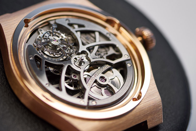 玫瑰金材质/GP09520自动上链机芯/时、分显示/陀飞轮装置/蓝宝石水晶镜面、透明底盖/表径42mm/参考价:NT$ 3,752,000