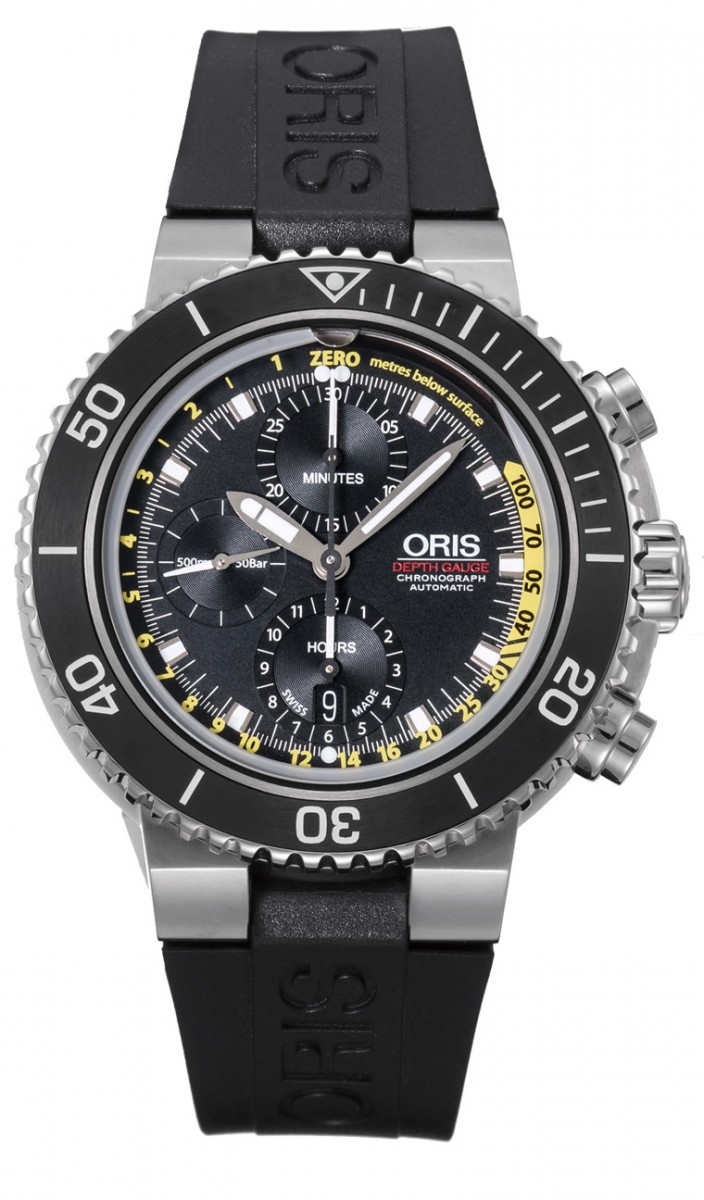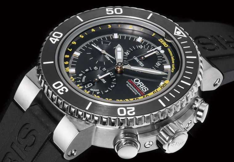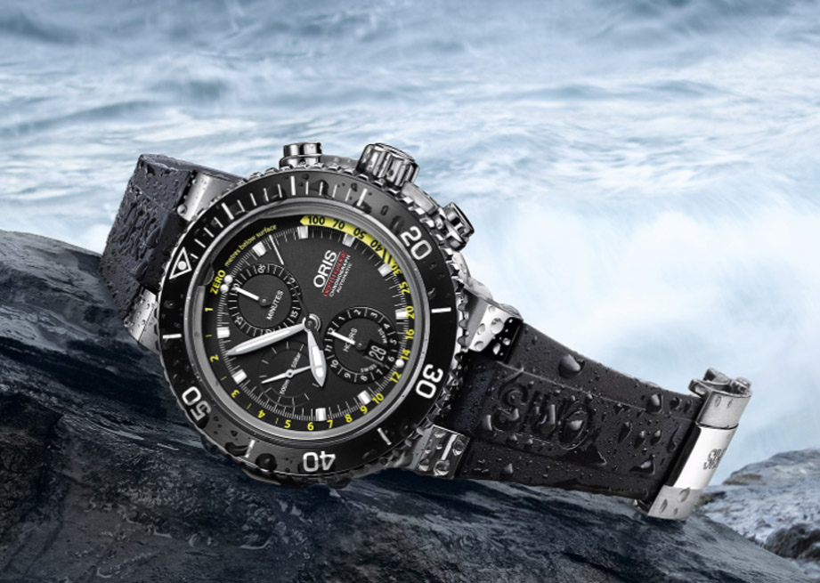 计时码表往往是跟运动表最「速配」的功能,不过应用到潜水表时,考量到多了计时按把组件可能会对防水性造成一些影响,所以两者的结合相对来说没有那麼合理,不过现在戴表不见得是以机能性为主要目的,也就是说有的人喜欢潜水表的风格,但他不一定会真的戴着表下水,因此这时候添加计时码表功能反而又可以突显运动表的个性——由于现代市场中有类似需求的不在少数,所以表厂也是前仆后继地推出潜水计时表,甚至有的防水性能同样很优异,在此就展现了表厂防水科技的傲人实力,例如这次介绍的ORIS Aquis Depth Gauge Chronograph,它的防水性能就颇具专业潜水表的程度。