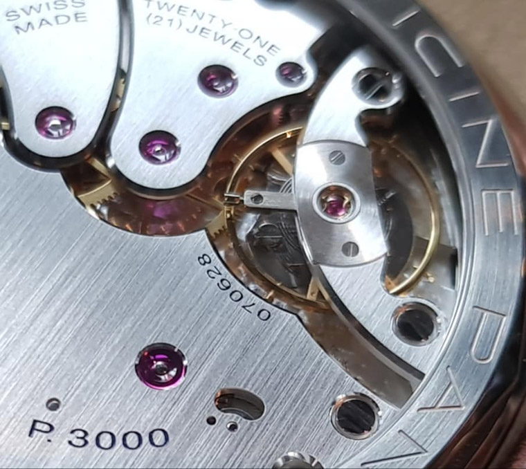 ▲真假PANERAI,只要看擒纵结构即可辨识(真品非常精致)。