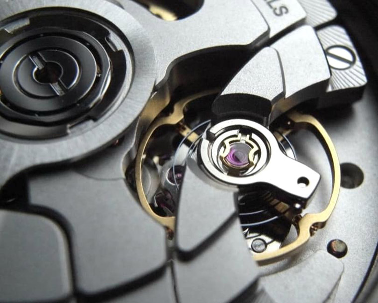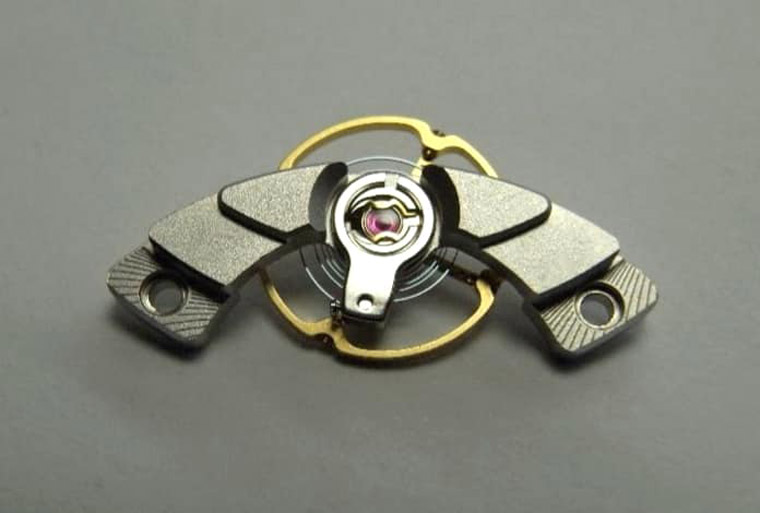 ▲搭载硅游丝,惯性螺丝微调摆轮,属于高级的微调机制。