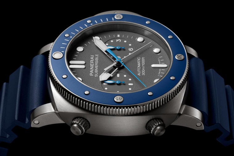 ▲PAM00982难得使用蓝色陶瓷表圈,搭配灰色粒纹面盘,散发出浓浓的海洋渊源。