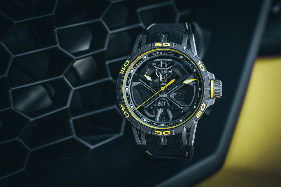 ▲罗杰杜彼再度推出与LAMBORGHINI合作的联名款式Excalibur Huracán Performante,包括外型与机芯都经过全新设计。