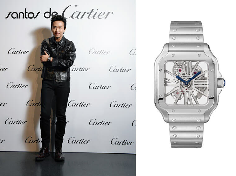 ▲邓超亮相Santos之夜,佩戴Santos de Cartier卡地亚山度士镂空腕表。