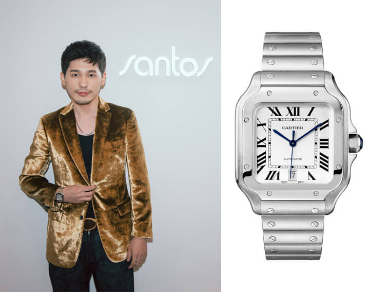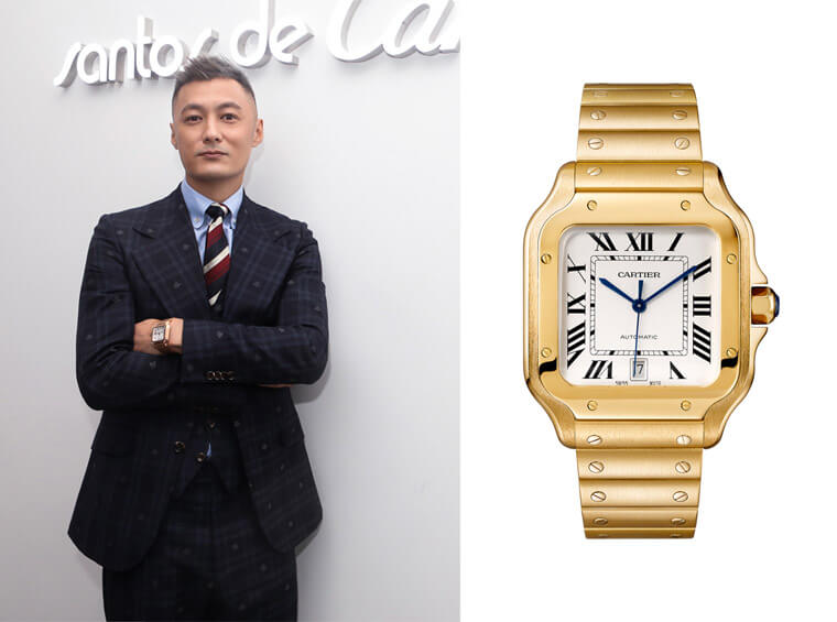 ▲余文乐亮相Santos之夜,佩戴Santos de Cartier卡地亚山度士腕表和卡地亚Juste un Clon系列手鐲。