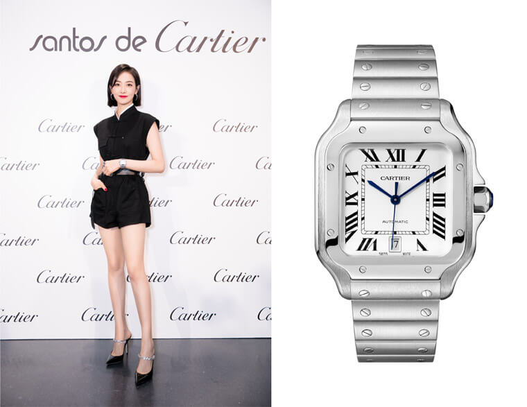 ▲宋茜亮相Santos之夜,佩戴Santos de Cartier卡地亚山度士腕表和卡地亚Juste un Clon系列耳环。