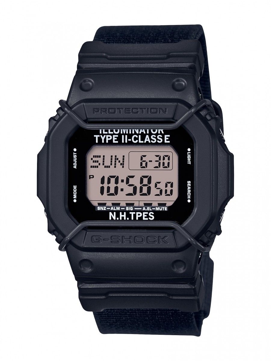 一直以来关注时尚、音乐、艺术、运动等各种文化领域的G-SHOCK再度携手日本男装品牌N.HOOLYWOOD推出全新联名表款DW-D5600NH,以军事风格为设计灵感,延续N.HOOLYWOOD的简约美学,整体设计以黑色为主题,表带为轻巧耐用的帆布材质,可轻松调整表带的松紧度,并为表款增添军事风格。