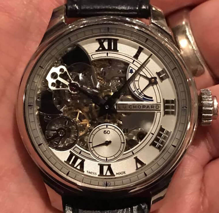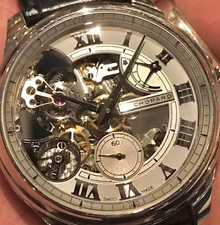 ▲表款搭载L.U.C 08.01-L手上链机芯,它具备两个发条盒,各别提供报时和走时系统动力,如此一来腕表的走时品质也能维持在高峰。