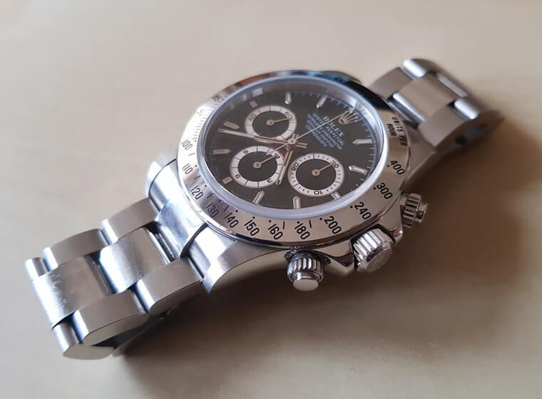 原味就是经典,劳力士Daytona以优良的品质与功能穿梭于当代、过去与未来的时空。我对科技的陶瓷圈还要配表才得以入手索然无味 (纯为个人看法,请见谅)。原味才是初衷,这也是钟表的本质。这只16520是在2000年即将停产时购入的,大概只佩戴5次,目前的行情约二万美金,有3倍的涨幅。来谈谈简单的工艺吧!Daytona 16520搭载以ZENITH El Primero为基础的4030机芯,不过最大的改造除了震频降为28,800外,还採用ROLEX专属的Microstella微调机制,双层游丝,并将自动轮从单层改为双层,自动盘镂空,提升了上链效能。其实总共有超过一百项改造,当然拋磨修饰更佳,劳力士的品质谁与争锋?