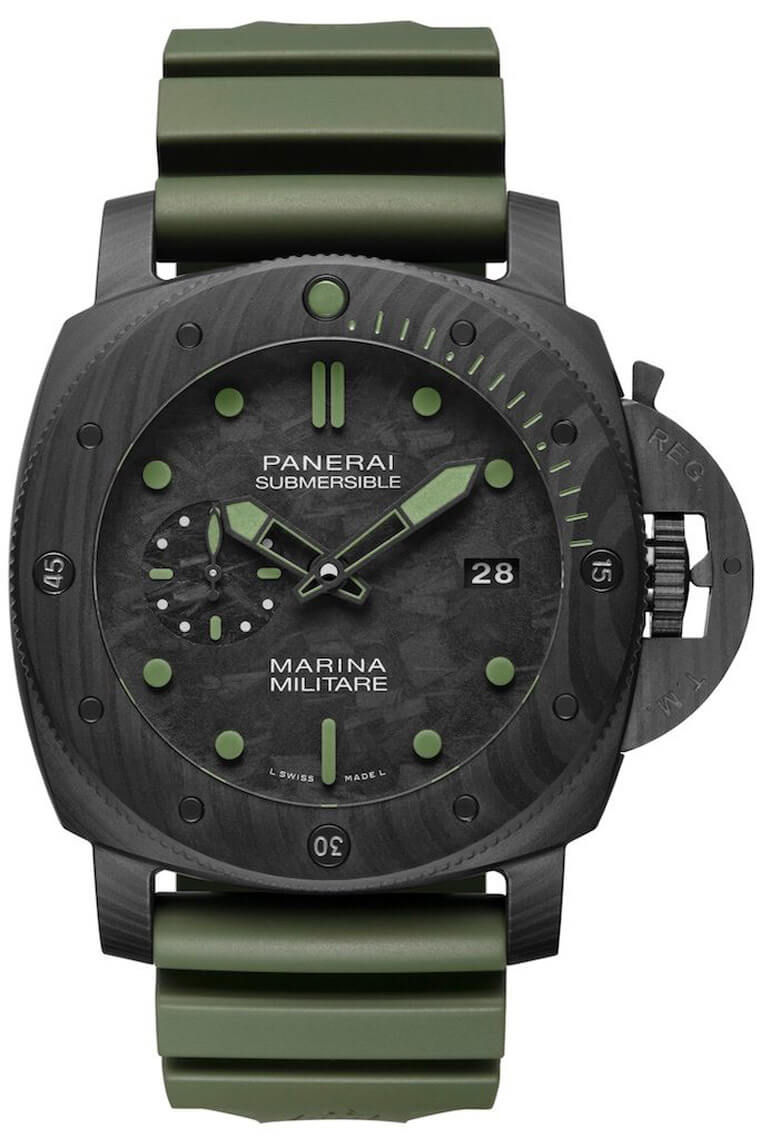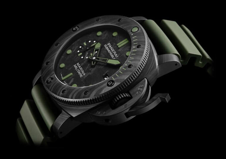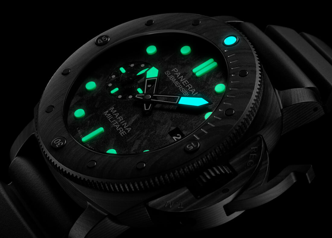 ▲沛纳海于2019年SIHH推出新款Submersible Marina Militare潜水表,表壳採用的Carbotech材质为品牌独家研发成果。