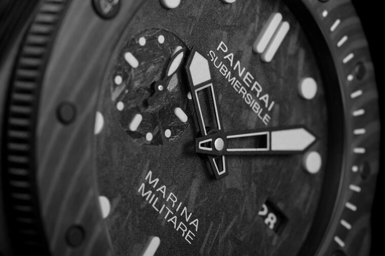 沛纳海在2015年首度开发出名为Carbotech的创新材质,从外观上大致可以猜到它是类似碳纤维的材质,但是Carbotech的纹路跟我们传统印象中那种整齐的编织纹又有点不同,这是因为品牌是在碳纤维薄片中加入高科技聚合物PEEK(Polyether Ether Ketone-聚醚醚硐),接着再透过高压和高温使得两种元素紧密结合,由于碳纤维薄片以不同角度层层堆叠,经过压密处理之后,Carbotech的外表因而呈现独树一帜的不规则纹理,而且它不只是外貌独特,在性能表现上,Carbotech比起钛金属更轻,强度又比不锈钢高,是一种非常符合运动表设计的理想材质。