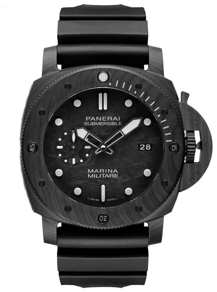 PANERAI沛纳海研发创新材质的热情你我都曾经见识过,在2019年的SIHH日内瓦表展上,品牌将会推出两款採用品牌独门Carbotech打造的大尺寸潜水表:Submersible Marina Militare,型号分别是PAM00961 & PAM00979,基本上两款搭载的机芯和功能一模一样,尺寸也都是小沛招牌的47mm大表径,比较明显的差别在于他们面盘细节的配色。