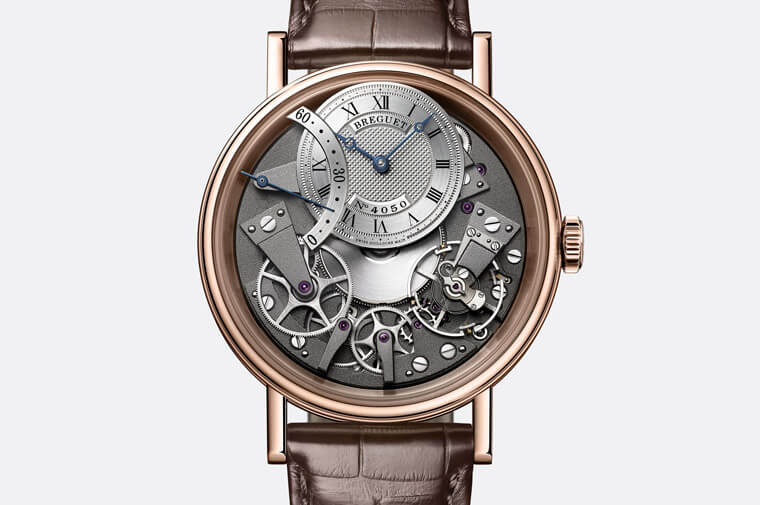 ▲Tradition 7097传世系列逆跳秒针腕表从古董怀表汲取灵感,特殊的面盘设计尽展宝璣深厚的制表工艺水准。