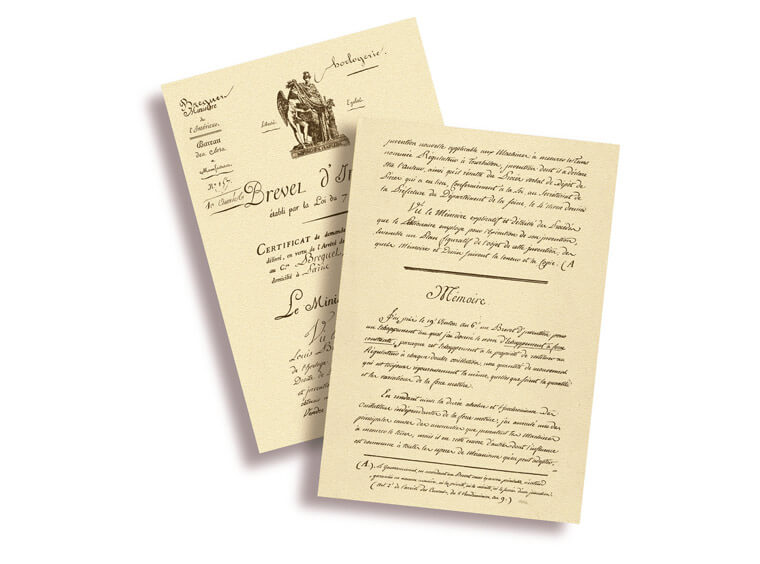 ▲早在19世纪初,宝璣便已经开发出有助于提升时计精准度的陀飞轮装置,此为宝璣当时取得的专利证书。
