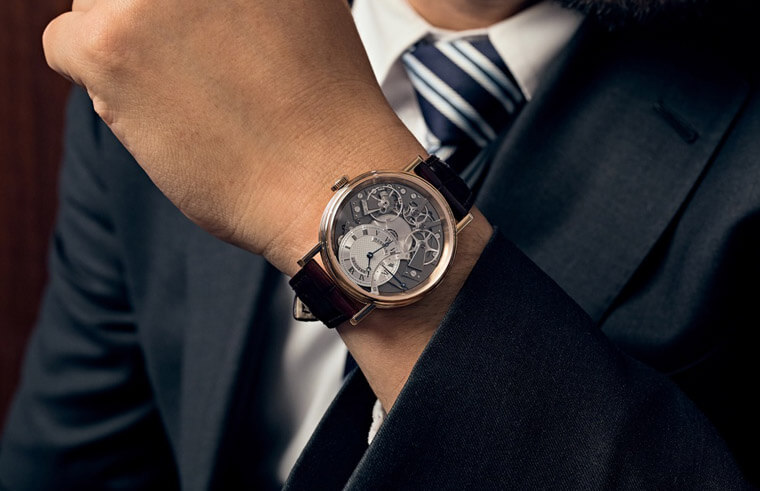 除了在工艺上展现前瞻视野,宝璣对美学的要求亦同样不马虎,宝璣以传统的方式制作手工鐫刻图案,同时也热衷于「复兴」经典,像是Tradition传世系列,便是怀表元素的现代演绎。从宝璣大师打造的「订制表」中汲取灵感,Tradition系列最大的特点就是将底板的机械装置完全展露,过往隐蔽于底板下的表桥、齿轮、擒纵机构、发条盒及机芯零件,统统成为面盘上设计装饰,从 Tradition 7097传世系列逆跳秒针腕表中,可以看见中置的发条盒与对称表桥迎来清爽的视觉平衡,喷砂的黑色桥板为其增添修饰效果,搭配经典的手工鐫刻面盘,机械零件成为腕表最佳装饰,工艺与艺术浑然天成叫人震慑。