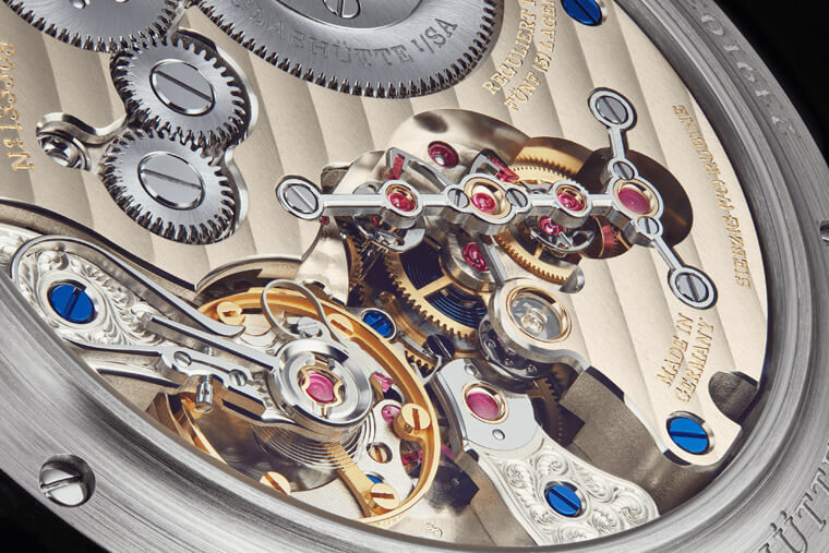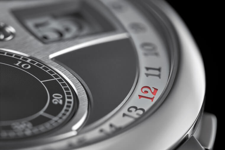 在前面提到的跳字显示之外,其实Zeitwerk系列还是一款具备恆定动力装置的作品,这种设计的好处在于能让腕表不会受到接近满链与空链状态时动力输送呈现强弱有别的影响,让腕表总是保持着稳定而一致的运作效率,同时时、分跳字盘都有特别装置能以瞬跳方式推进,恰到好处的掌控腕表运作所需的能量与摆轮频率,这是朗格致力追求精准度的具体表现。