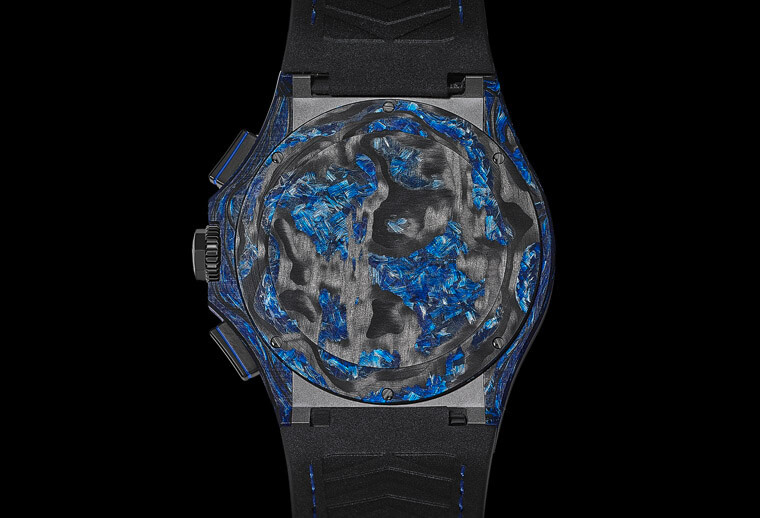 质地均匀的大块材质带有纹理,经过各种修饰就能出线独一无二的动态效果,让每一只时计能独具个性、绝无二致。其他碳材质的制造工艺很难使时计在无需任何外壳就能达到密封性,但是这个问题却被玻璃碳的防渗特性破解,这也是工艺最突出的创新之处。