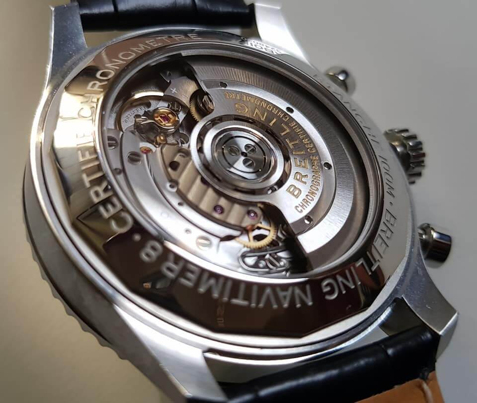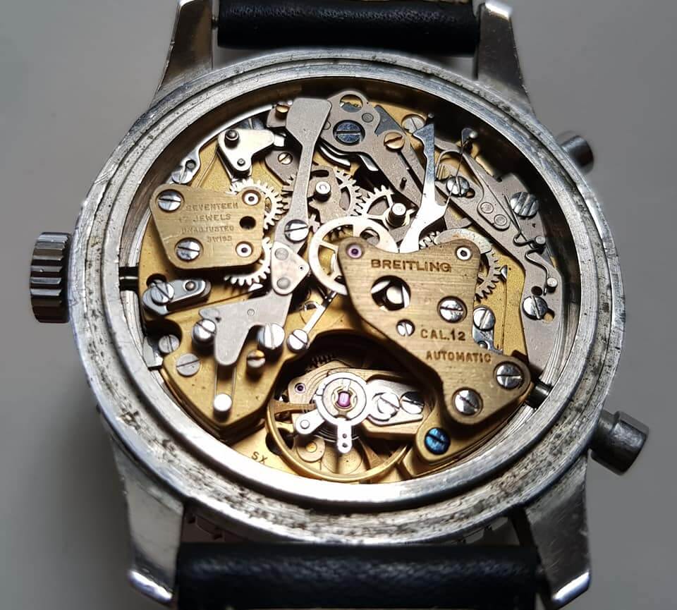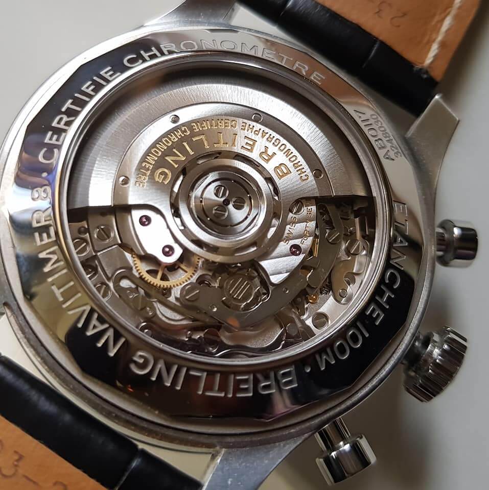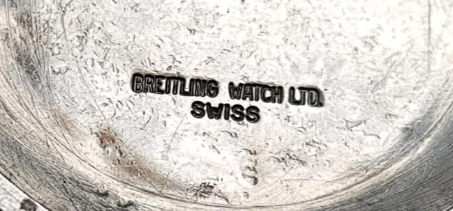 ▲古董表后盖内侧打上”Breitling”字样。