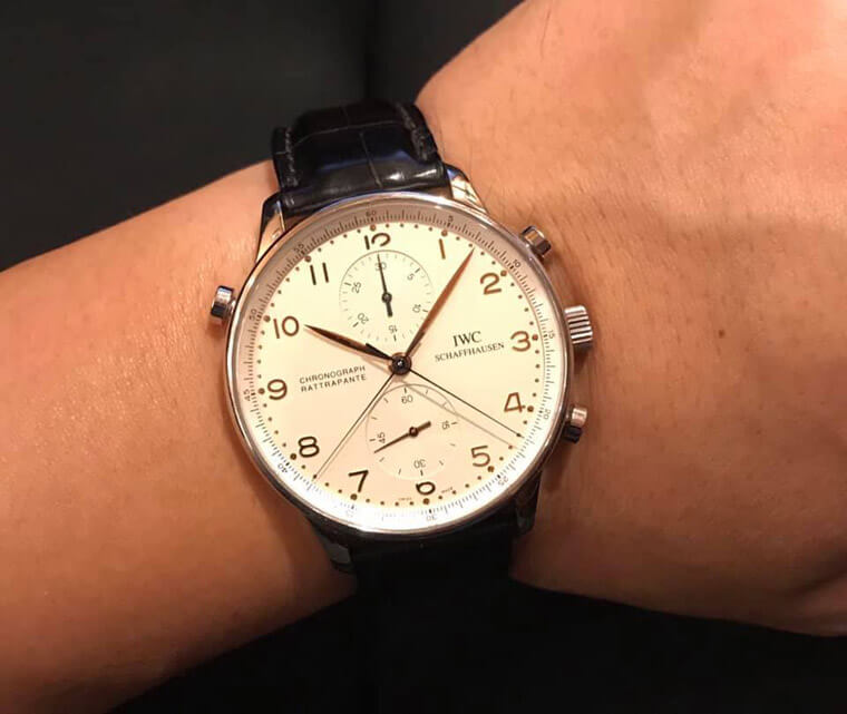 知名的双追针计时码表,也是IWC的代表作之一!1995年推出轰动一时,特色包括品牌自制双追针计时结构、独特的追针螃蟹脚、红宝石的防磨损拨桿,机芯为手上链,具有27颗红宝石,并且经过5方位的天文台调校,各处都可以感受到IWC在设计制作上的用心。