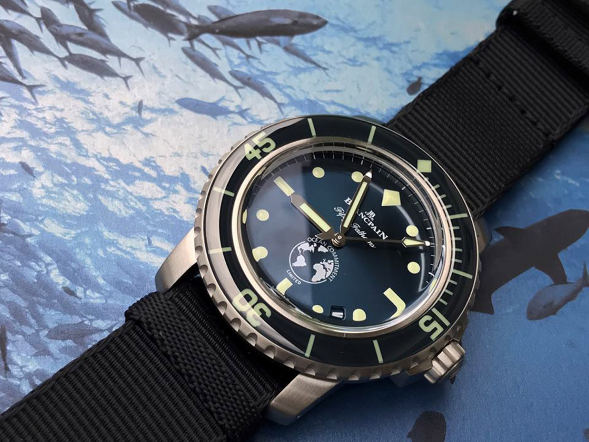 复刻表比较令人担忧的是丧失原作的精髓,但是这款五十噚将表径控制在40mm毫米上下算是恰到好处,这款是两年才出一次的心系海洋特别版,2018年宝珀把设计基础转移回到五十噚系列身上,心系海洋招牌的蓝色调套用在五十噚身上显得相得益彰,何况购买这只表还能为公益出一份心力,这也是它的另一个卖点。