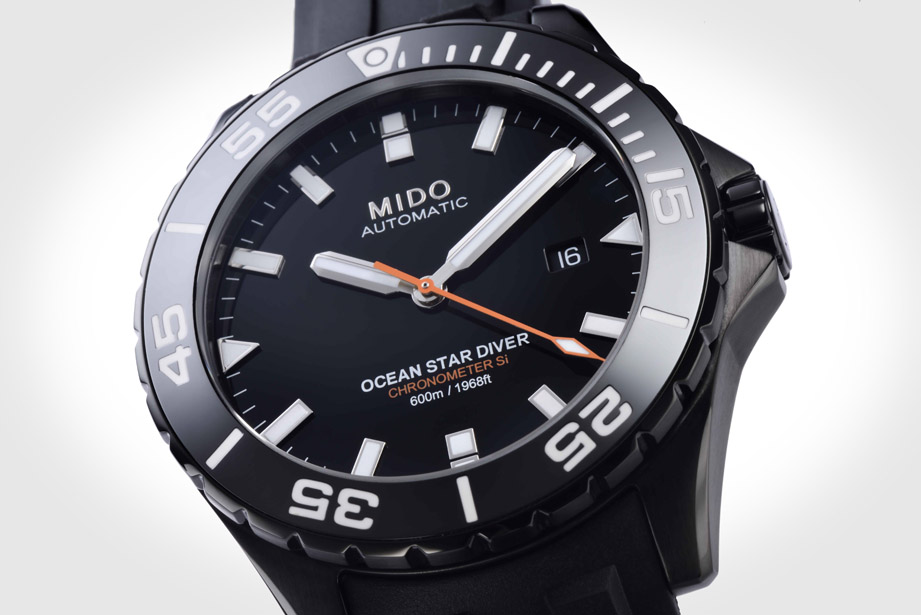 MIDO美度推出Ocean Star Diver 600海洋之星深潜600米,由内而外全面优化潜水腕表,Diver 600深潜走时动力来自于瑞士天文台(COSC)认证80小时硅游丝机芯,动力储存长达80小时,硅游丝材质提供腕表卓越的精准度与抗震性能,此外,腕表更通过ISO 6425潜水认证,防水深度可达600米,并配备自动排氦功能。全新升级黑色陶瓷环按压单向旋转表圈,丝光打磨316L不锈钢表壳採用黑色DLC类钻碳镀膜处理,工艺赋予表壳独具一格的特殊色彩,更兼备防腐蚀、抗摩擦以及低过敏性等实用功能,成为潜水爱好者深潜远洋不可缺的好伙伴。