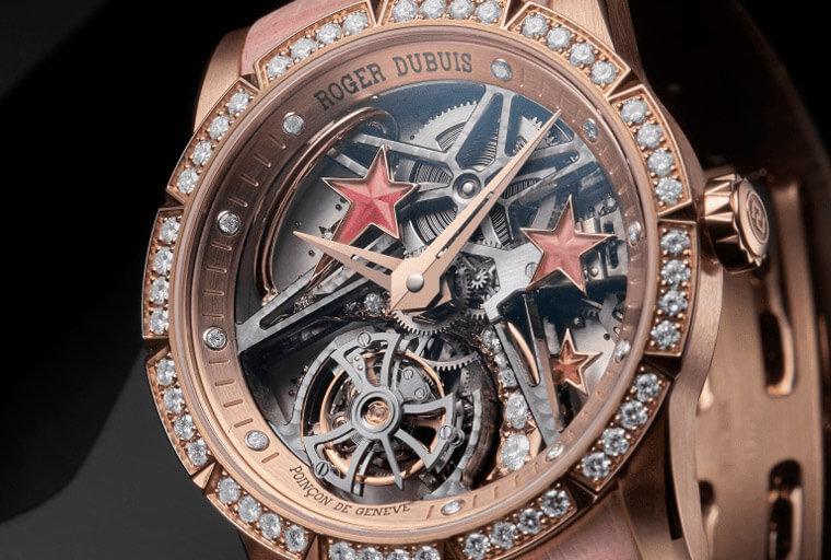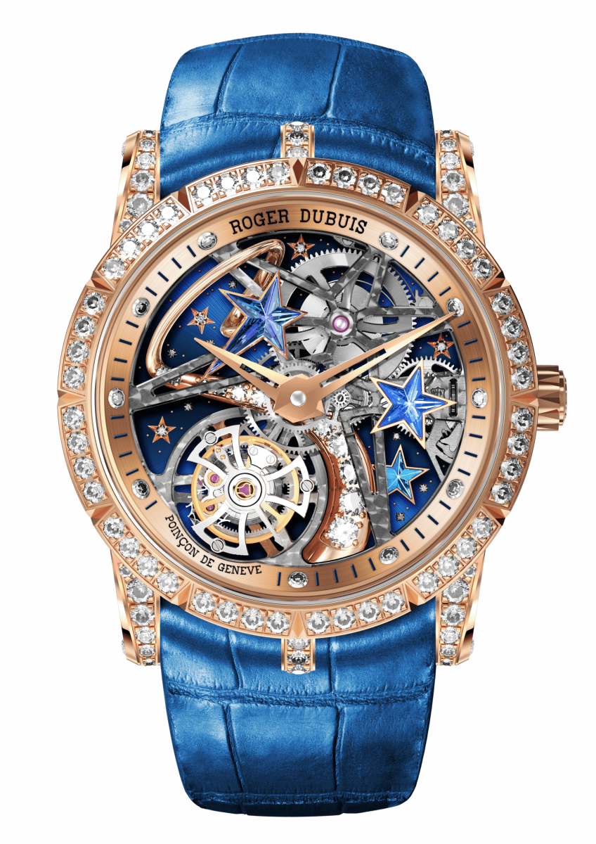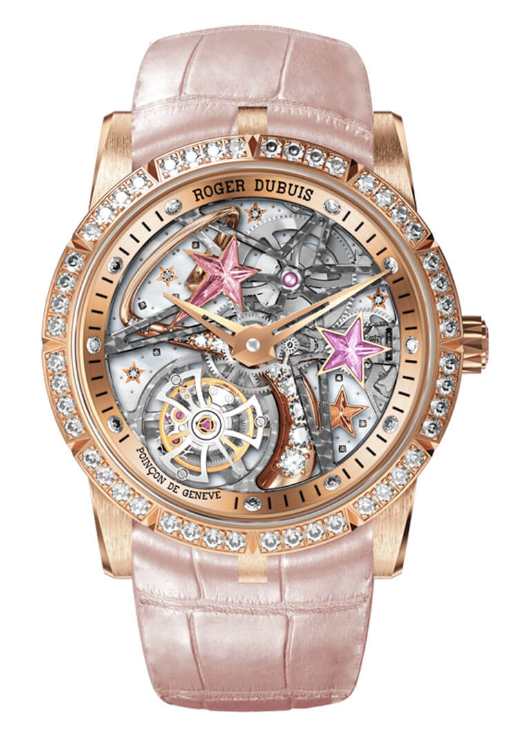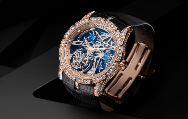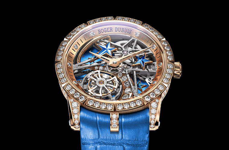 罗杰杜彼2019年持续不断地以推出果敢创新的时计展现其豪情壮志。推出崭新作品不仅比先前创作更具挑战性,同时也频频突破技术与美学界限,推出专为女性设计的Excalibur Shooting Star 镂空飞行陀飞轮流星镶钻腕表,强力震憾整个制表世界。