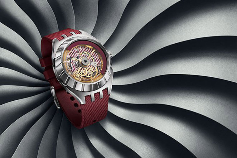 记得2018年夏天我们曾经介绍过Swatch集团与AUDEMARS PIGUET爱彼合作研发出了一种全新的Nivachron™合金材质,用途是要制作擒纵系统内部的重要零件——游丝,据知这种材质的游丝最大的优势在于抗磁能力的提昇,相较传统游丝材质可以提升十倍以上,不过当时新闻发布时,无论Swatch集团或是爱彼都没有表明这种新游丝会应用在哪个品牌或哪种款式上,就连爱彼2019年随着CODE 11.59系列推出的新机芯也没有採用这种新游丝,原本我们预估Swatch集团可能会等到今年正式脱离Baselworld自行办展时,作为新品吸引市场目光的大绝招,但是想要猜透这些大集团大品牌的想法谈何容易,因为就在昨日、也就是情人节当天,Swatch集团竟然无预警抢先揭露这枚新游丝的最新动向!原本预测可能会抢先应用Nivachron™游丝的品牌如OMEGA、LONGINES或宝珀、宝璣都一一被跳过,谜底揭晓,最先採用Nivachron™游丝的品牌手表是——SWATCH新表FlyMagic!!!