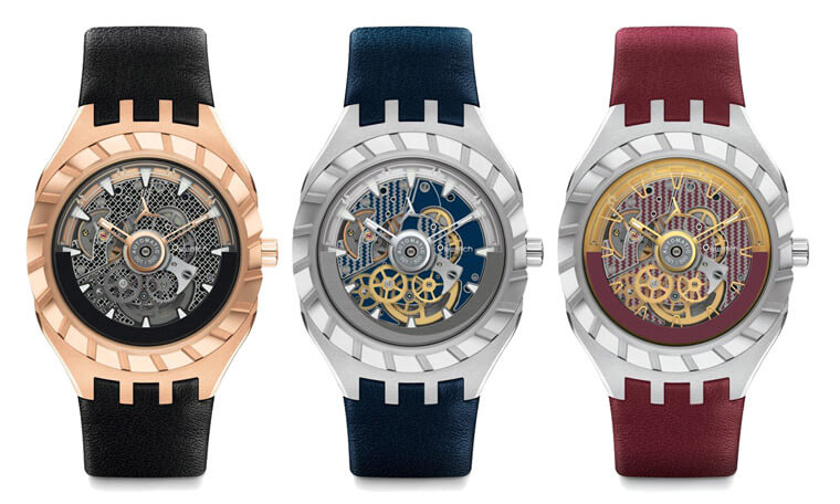 ▲SWATCH将抢先推出三款FlyMagic,分别採用不锈钢或PVD不锈钢表壳,顏色则有红、蓝、黑可选,各限量500只。