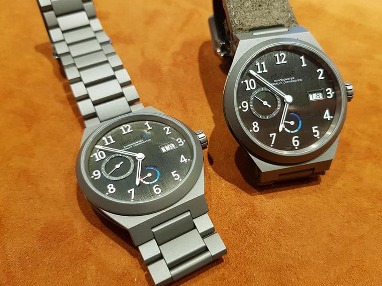 前不久遇到HORAGE的创办人带着K1表款从瑞士回到台北,与表迷分享创业的历程与心情。细看每一只HORAGE做工细腻,也用最好的材质,包括316、904,也有陨石面盘,价位合理,手表品质超越价钱,这才是值得入手的好表。这只10周年表款搭载K1新机芯,硬化处理的钛金属表壳,附有2条表带,瑞士天文台认证,以4颗砝码微调的摆轮(高级机芯的配备),还带有大日期与能量显示功能,旋入式表冠,订价瑞郎3990元,只能说相当超值(一般至少要美金一万元)。