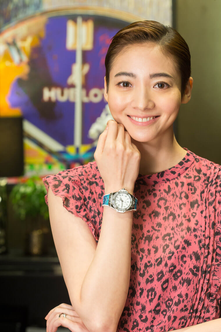 ▲谢沛恩佩戴Big Bang One Click钛金腕表。