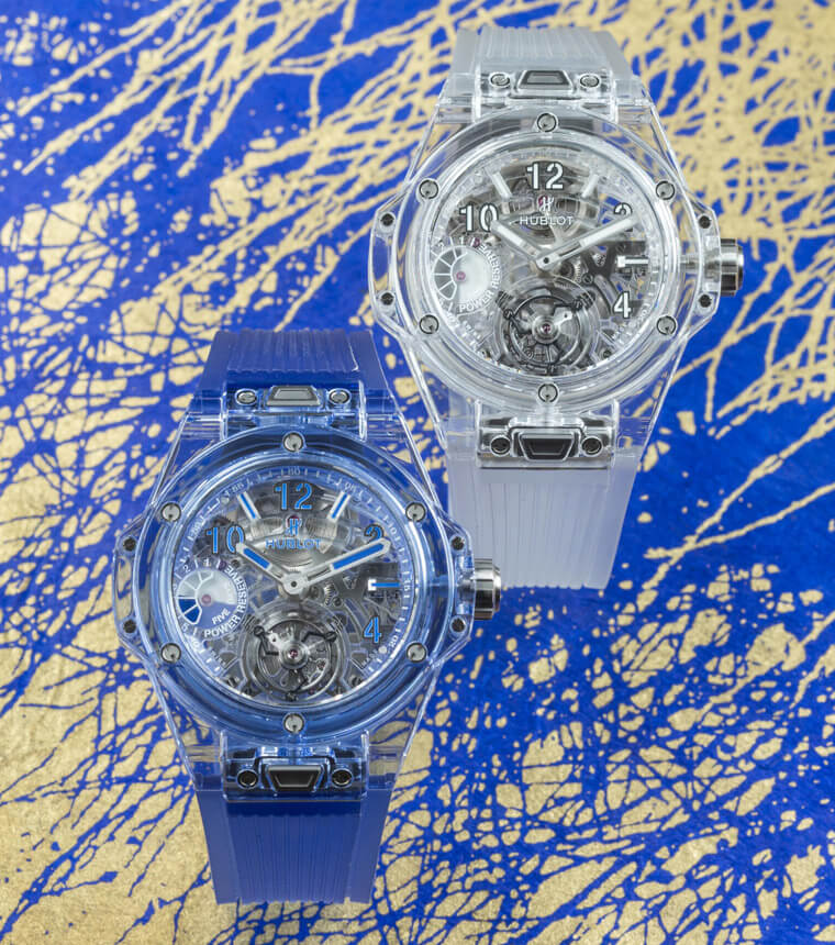 ▲Big Bang蓝宝石陀飞轮腕表和Big Bang蓝色蓝宝石陀飞轮腕表(左),Big Bang蓝色蓝宝石陀飞轮腕表限量30只,参考价: NT$ 5,396,000