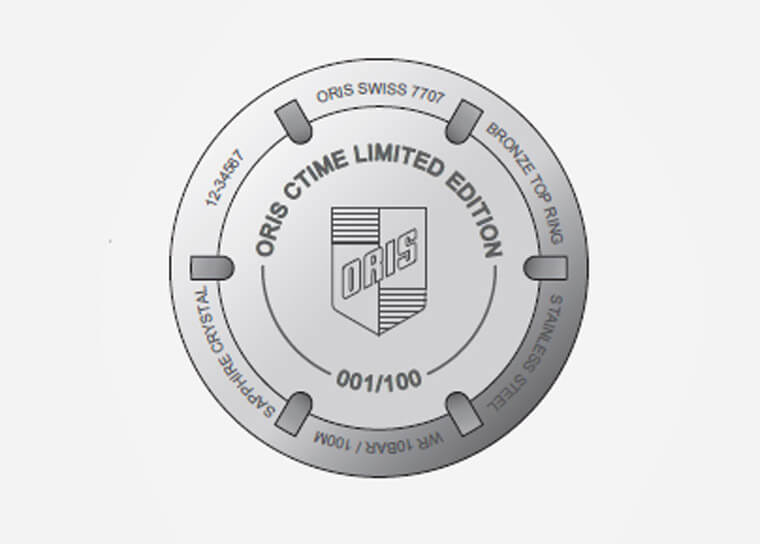 ▲底盖刻有象徵区域限定版的"ORIS CTIME LIMITED EDITION"字样。
