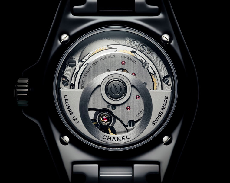 ▲新版J12首度改採透明底盖,并搭载品牌全新研发的12.1机芯,动力存存一举提升到70小时水准。