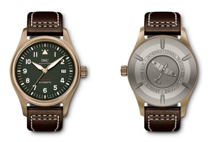 还有一款青铜喷火战机腕表(IW387902)是飞行员系列裡面不陌生的计时款式,虽然飞行员计时码表过往我们在不同的子系列中陆续看过了不少款作品,但值得注意的是这是IWC第一次将69000系的机芯引进到飞行员系列的处女作,这枚机芯在2016年初出时是和工程师系列搭配,直到2019年才被移植到喷火战机系列中,它的规格包括导柱轮机制、46小时动能与震频4Hz等,功能性方面除了计时功能本色,这枚机芯亦有日期与星期显示,在实用性层面展现品牌一惯的贴心风格。最后要提到的一款喷火战机系列青铜表号IW326802是系列中功能最基本的款式,表径39mm算是现今的适中尺寸,IWC这次也搬出了32000系自动基础机芯到飞行员系列中,表款的三针加日期功能以实戴性而言中规中矩,但它具备了3日链以及软铁内壳提升抗磁性能等设计,则是确保它比一般的基本款更为好用耐用。