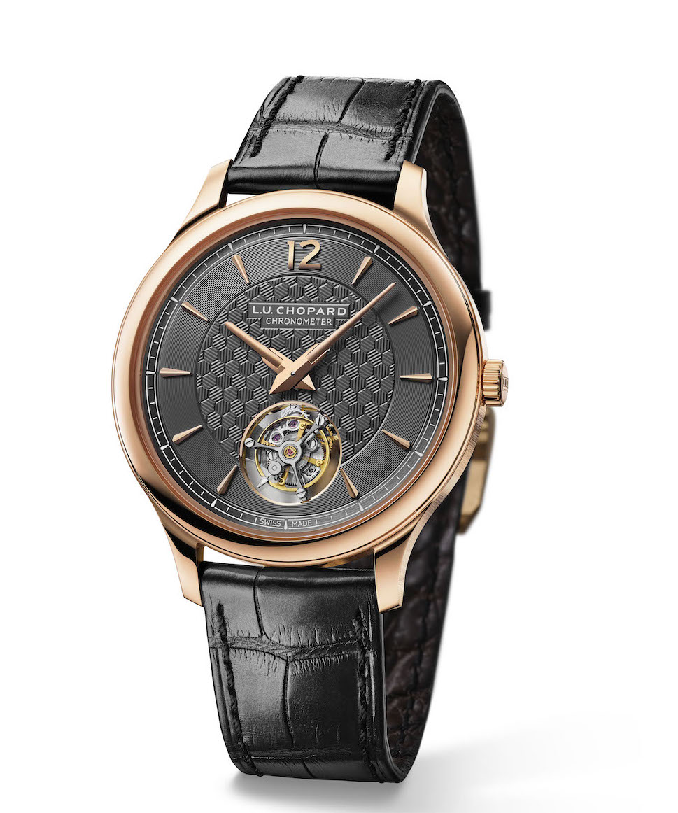 CHOPARD萧邦推出全新L.U.C Flying T Twin腕表,为首款搭载飞行陀飞轮的萧邦时计,完全在L.U.C工坊中设计、制作及组装。品牌自2018年7月起,腕表和珠宝作品完全採用符合伦理道德标准的金原料制作,此表款同样採用经过「公平採矿」认证的18K玫瑰金制成。表径40毫米、表壳仅厚7.2毫米的卓越腕表,揉合玫瑰金的温暖和炭灰色的冷峻,营造鲜明的对比效果,全球限量发行50只。