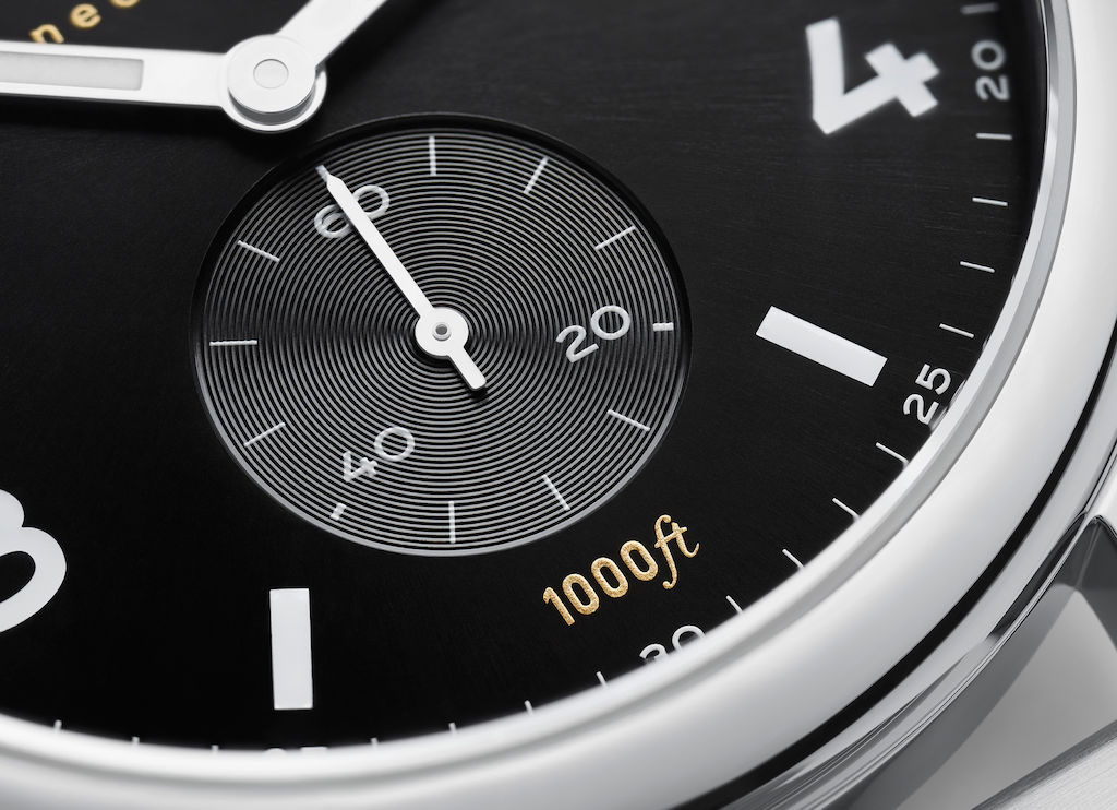 ▲面盘上刻有1000英尺的字样,是这款腕表出色防水性能的标准,它还可以完美应对陆上各种情况。
