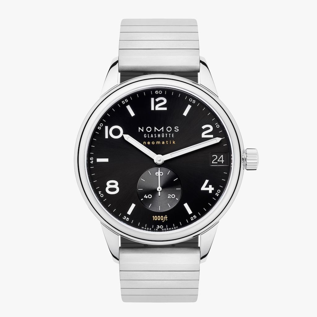 这款Club Sport腕表是品牌迄今为止最具阳刚魅力的时计作品,腕表採用NOMOS自制的neomatik(DUW 6101)机芯,具有日期显示功能,坚固的表壳拥有更为出色的密封性,抗震防水。凭藉纤薄的neomatik机芯,腕表呈现出小巧却比例完美的穹形。纤薄的机芯为这款腕表在厚度上节省了足够的空间,令其外观紧凑小巧,却又异常坚固。Club Sport腕表还从各个细节上确保了腕表佩戴的周全:如果佩戴者未完全拧紧表冠,表冠上的红色标识会给出相应的提醒。