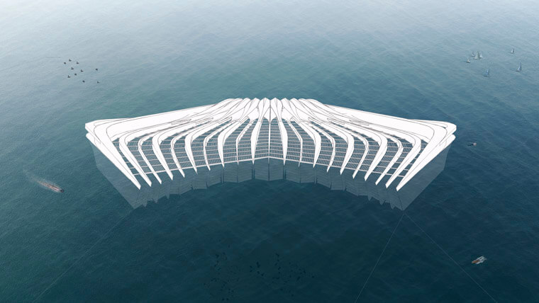▲图为太平洋垃圾筛选组织所计划打造的浮动平台,这个装置的下方设有鰭片,可以让底下的水流趋于缓和,并让塑料沿着水流上升到平台表面达到回收的目的。