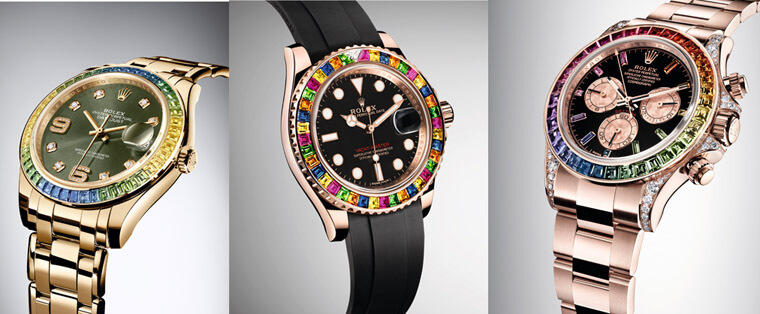 资深钟表鉴定师Sam指出,这几年劳力士开始改出表圈镶上七彩宝石的彩虹圈手表,例如Datejust 86348 SABLV–42748、Yacht-Master 40 116695 SATS和2018年推出的Daytona 116595 RBOW等就有愈来有抢手的趋势,声势慢慢超过了满天星。