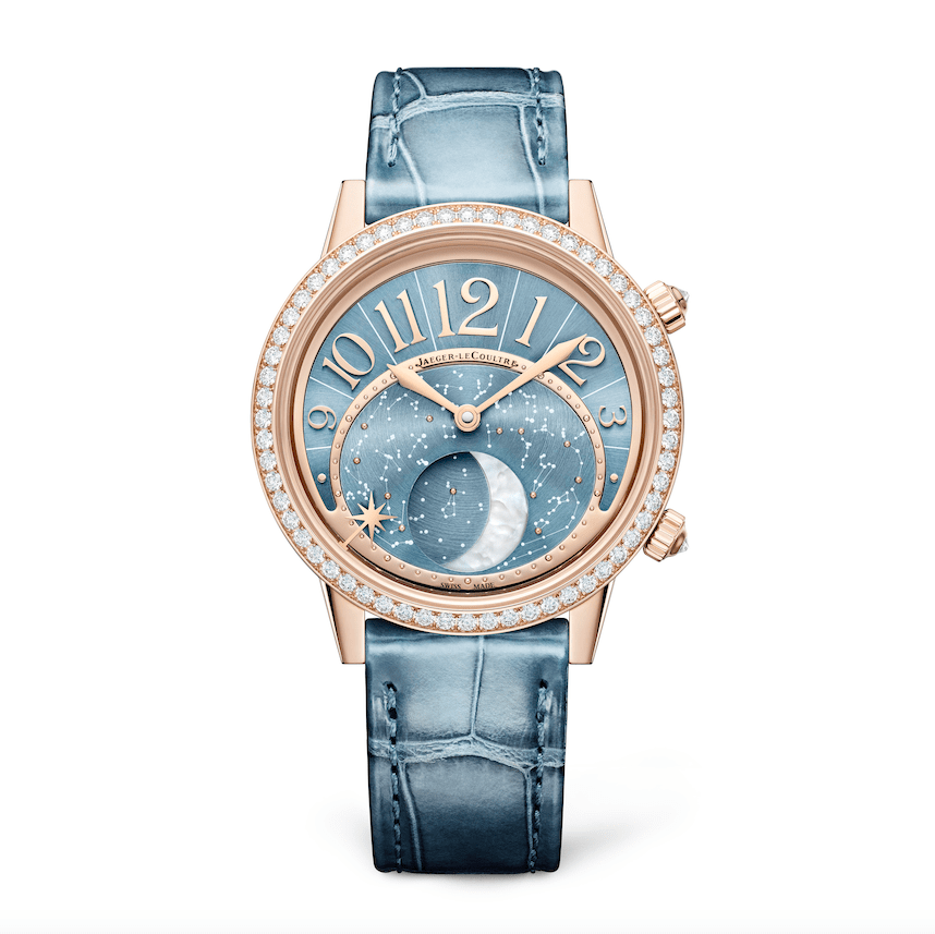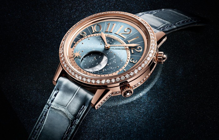 2019年积家JAEGER-LECOULTRE再度推出全新Rendez-Vous Moon Serenity约会系列月相腕表,腕表在玫瑰金的调和下更显瑰丽珍稀,积家表厂精湛的制表技术和珠宝工艺水乳交融,让腕表绽放出璀璨夺目的亮彩。