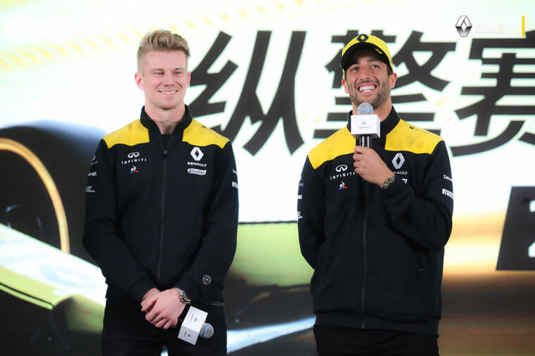 ▲雷诺F1车队赛车手Hülkenberg(左)和Ricciardo(右)皆佩戴柏莱士BR V3-93 R.S. 19计时码表出席2019年雷诺F1车队之夜。