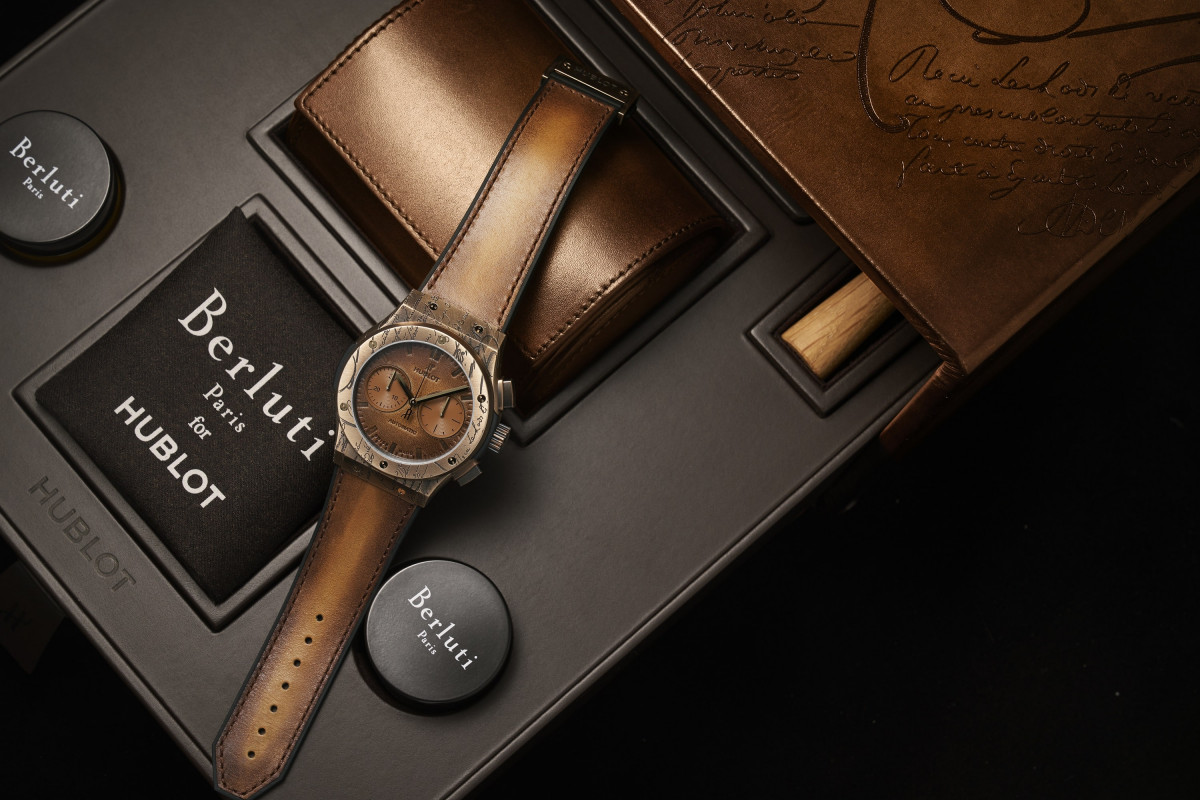 ▲两种版本腕表全球均仅限量200只,每只皆以订制表盒呈现,同时附赠一套完整BERLUTI皮革保养组,将时尚优雅珍藏于腕表中。