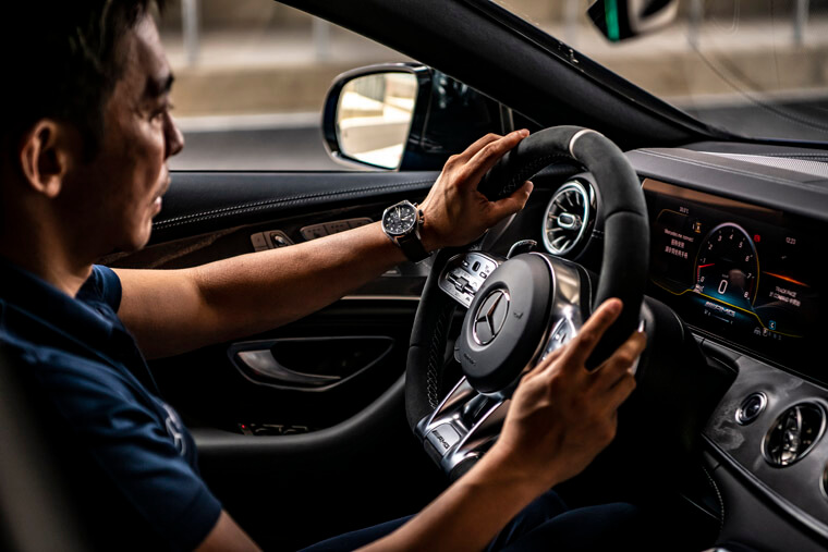 而在2019五月IWC找来Mercedes-AMG官方合作的Craft-Bamboo Racing车手李勇德,佩戴IWC喷火战机飞行员计时码表,完美搭配全新推出的AMG GT 63 S 4MATIC+ 4-Door Coupé车款,完美的演绎了腕表的迷人风采。