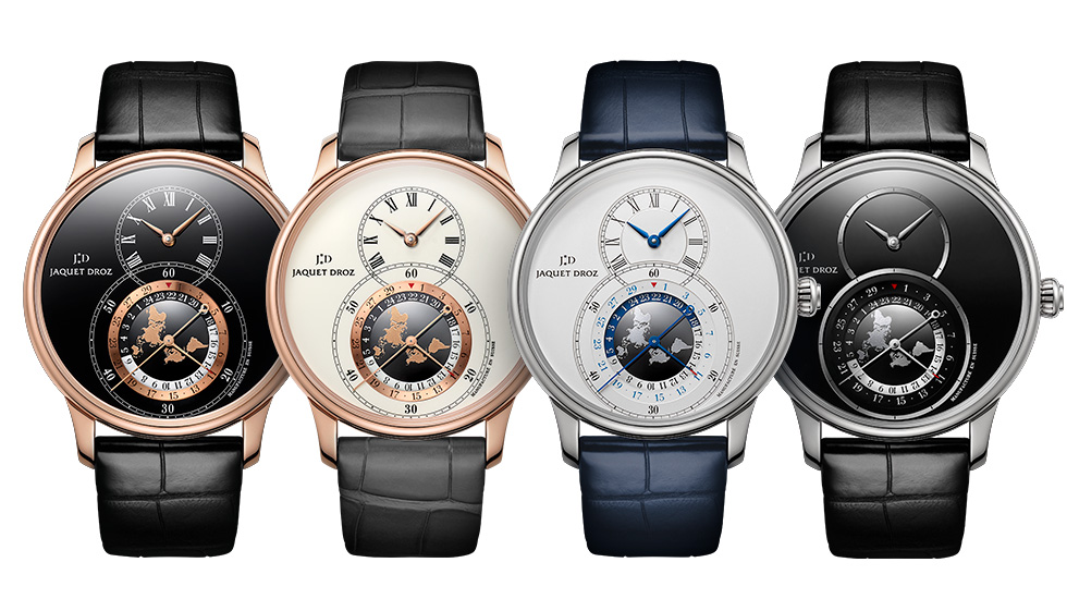 新款在美学设计作出重大调整,基于配备硅质游丝和擒纵叉的自动上链机芯,雅克德罗以全新方式呈现设于大秒针着名数字“8”形面盘下半部分的旅行复杂功能。面盘中央呈现自北极所见的五大洲平面图,为打造此现代世界地图,品牌採用喷粉润饰,缔造出土地的纹理质感,赋予五洲图景逼真感和立体感。根据表款不同,五洲大陆自黑色或深灰色镜面拋光底面上跃然而出。