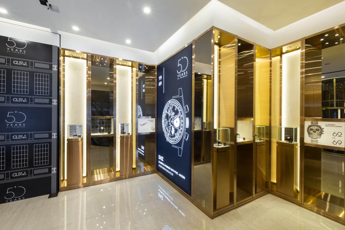 ▲6月24日起,只 要亲自走一趟享得利三宝名表,便能感受真力时El Primero自1969 到2019 超过半个世纪一路追 求精准及创新所演进既前卫又经典的魅力。