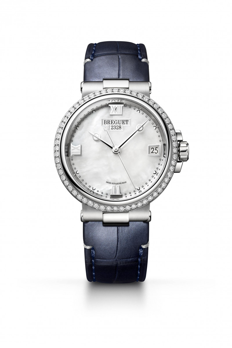 ▲此系列秉承宝璣传统,结合精致格调和超卓性能。腕表由宝璣自动上链591A机芯驱动;机芯厚3.41毫米,设有日期显示。Marine手表可贴合纤幼的手腕,其表壳直径不到34毫米,并设有可调式表带扣。
