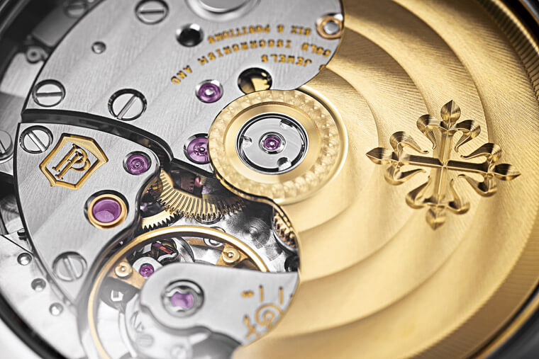 百达翡丽本次以324机芯为基础,附加崭新研发的周历模组催生出26-330 S C J SE这枚新机芯,从机芯的名称可以读出它的直径为26.6mm、厚度为3.3mm等讯息,总计324基础机芯的零件加上周历模组(92枚零件)的零件共有304枚,机芯结构比起一般全日历功能腕表还要再复杂一些。这枚机芯并非只是附加模组如此简单,百达翡丽针对机芯内外都做出大幅度的调整修改,例如K金自动盘在轴心两侧部分各挖了两枚凹槽,搭配百达翡丽启用新型专利离合齿轮取代传统离合桿与梢钉弹簧的组合,由此优化单向上链的效率与组件寿命,再者上链系统内部的减速齿轮也经过修改,当佩戴者手动上链时,减速齿轮便会暂时与自动上链器分离避免零件不必要的磨损。