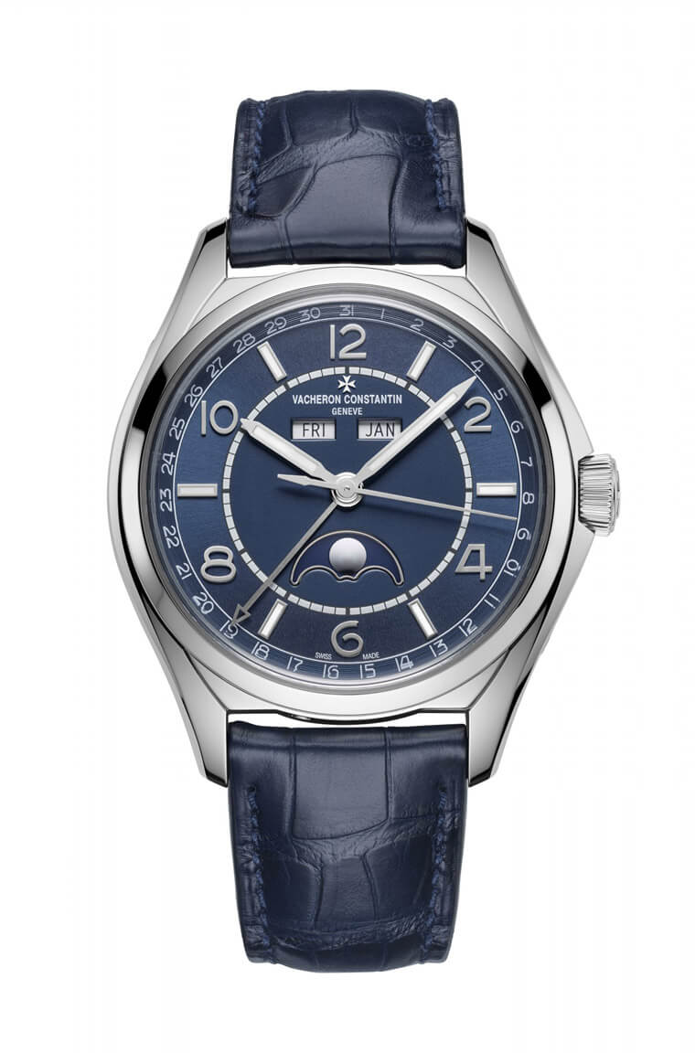 Fiftysix®系列拥有复古的现代设计风格,2019年系列推出的蓝面改款包括全日历手表以及自动上链手表,两者均採用直径40毫米的不锈钢表壳,黛蓝色面盘上配备覆有Super-LumiNova®夜光涂层的棒状指针和白金时标。两只表均搭配与面盘顏色相衬的深蓝色鱷鱼皮表带。Fiftysix®全日历手表搭载2460 QCL/1自动上链机芯,为星期、日历、月份和月相显示提供了充足动力。 Fiftysix®自动上链手表搭载1326自动上链机芯,拥有小时、分钟、中央秒针及日期显示功能。