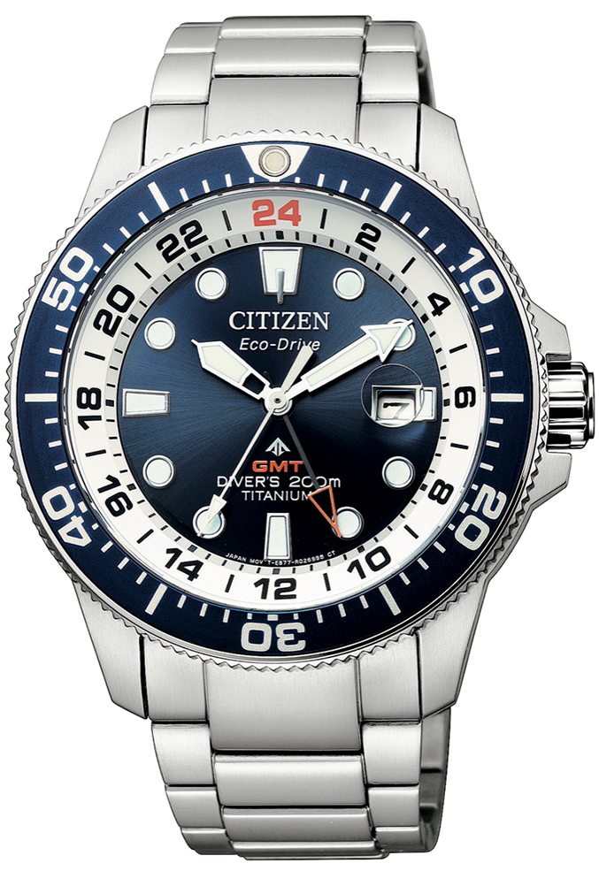 光动能GMT潜水表,除了搭载CITIZEN看家本领的光动能、极具亲肤性及轻盈的钛金属表壳表带以及蓝宝石水晶玻璃都是全新光动能潜水表的标配,此壳款推出三款型号,三款的面盘上的GMT两地时间指针分别以萤光黄、暖阳橘及珊瑚红作为细节点缀的色彩亦象徵夏日鲜明的跃动感,鲜明的指针色彩也能够立即分辨两地时间。而既然作为Promaster的成员,针对实用的功能势必有所强化,例如更长效的夜光刻度指针显示,日期窗放大显示,都能让在昏暗的环境亦能精准掌握时间日期。