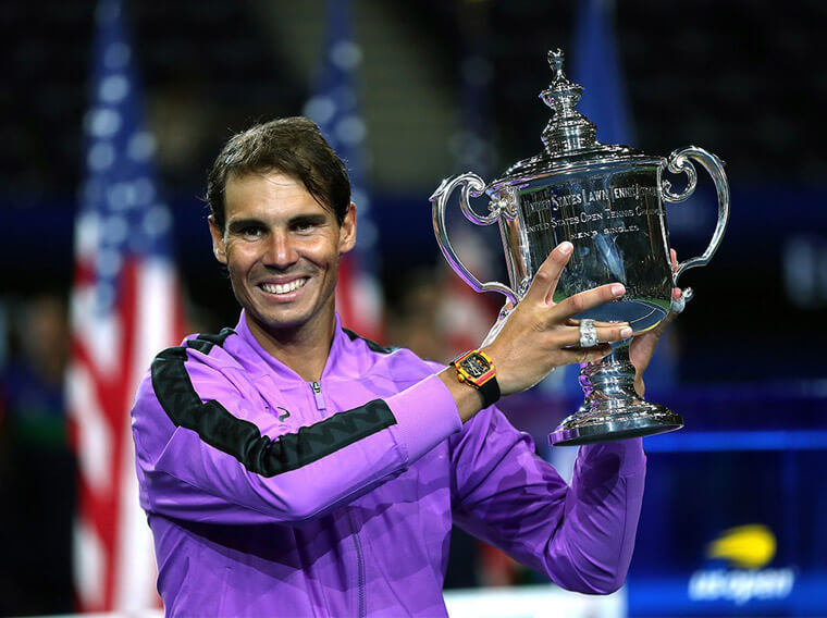 网坛目前排名世界第二的西班牙好手「蛮牛」Rafael Nadal今日在2019年的美国网球公开赛男单决赛中力拼五盘,最终以7比5、6比3、5比7、4比6、6比4的比数扳倒小他十岁的俄罗斯好手Daniil Medvedev,摘下个人第四座美网冠军、同时也是生涯第19座大满贯金杯,距离使男单选手史上最多大满贯的瑞士天王Roger Federer仅一冠之遥,Nadal在这次的赛会中依旧佩戴RICHARD MLLLE替他量身打造的RM 27-03陀飞轮,这款表近年来陪着Nadal到处征战,成为他写纪录过程中不可或缺的好伙伴。