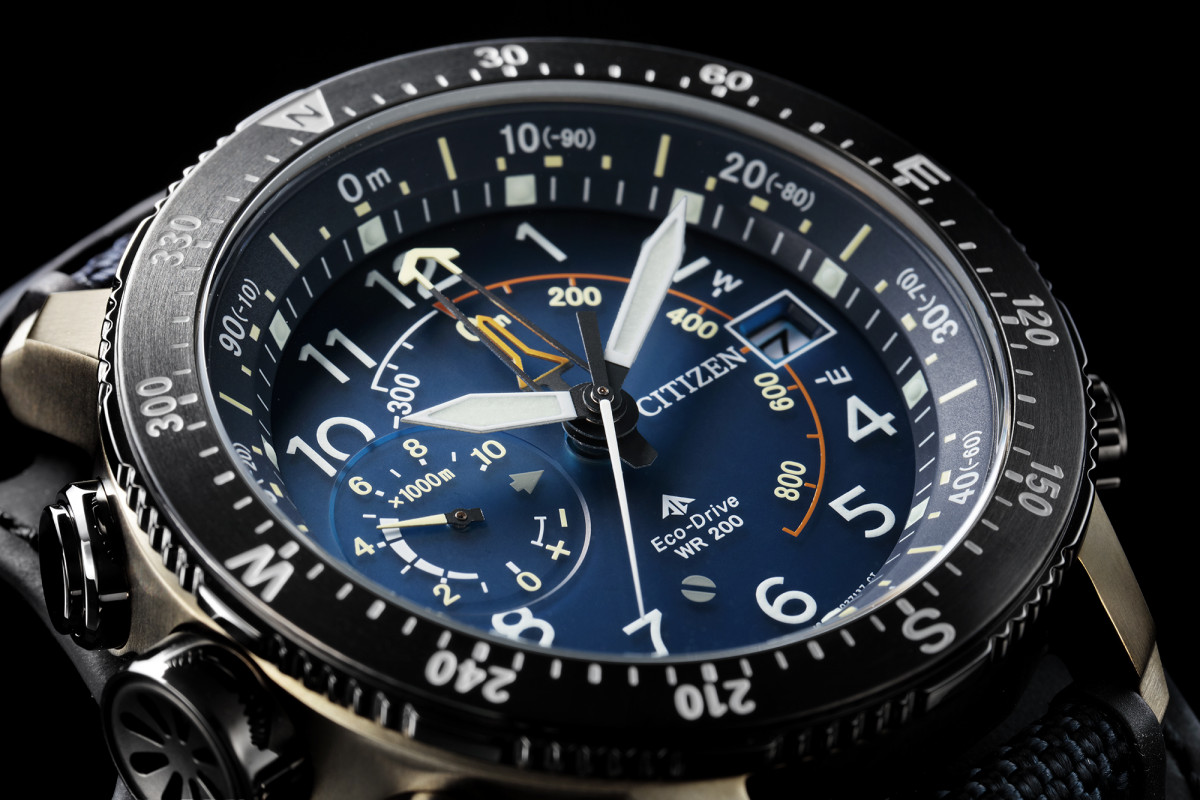 以钛金属材质、经过DLC处理的「光动能GPS卫星对时表款F990」CC7015-55E,呈现全黑色的钛金属表壳。此表款属于另一个重头戏——PROMASTER 30周年限量款的Sky空中之霸。限量70只的CC7015-55E旗舰级腕表,大表径46.6mm、20气压防水,配备飞行滑尺刻度及陆空视觉信号编码,只需简单一键操作0.9秒即可完成两地时间的切换,面盘配置显示光动能GPS卫星对时表的丰富资讯,完美细节呈现飞行腕表DNA,顺应好动好强的男人味。坚固的表壳结合表盘大胆的多层结构,突显出五个独立层次感,突破传统表面设计结构,营造出指针悬浮于多层表盘之间的视觉层次,如同卫星与星体运行轨道之感,富含日系科技感设计与日本縝密的机芯工艺完美结合。